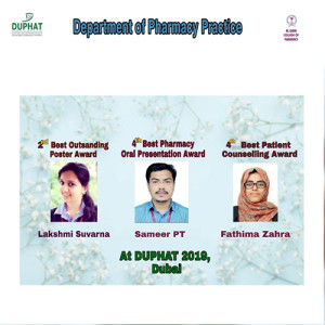 | 2022 | Rahna Rasheed (PharmD 5th year) presents poster at DUPHAT 2022 (Feb 22–24, UAE). |