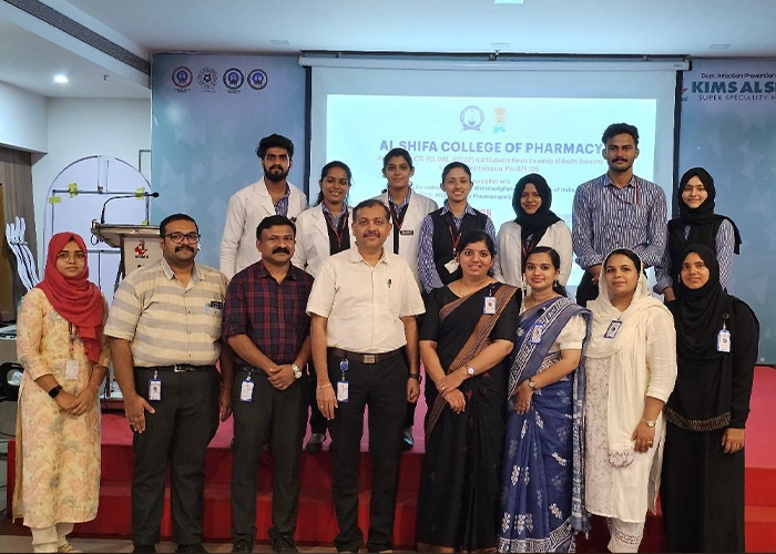Ministry of Health & Family Welfare, Government of India approved and commenced the Materiovigilance Programme of India (MvPI) in the country with the sole objective of monitoring the safety and ensuring quality of medical devices used in the country. The MvPI was formally launched at the Indian Pharmacopeia Commission (IPC), Ghaziabad by the Drugs Controller General India (DCGI) on July 06, 2015. Indian Pharmacopoeia Commission (IPC) is an autonomous institution of the Ministry of Health & Family welfare and also functions as the National Coordination Centre (NCC) for the Materiovigilance Programme of India. The Materiovigilance Centre functioning under Al Shifa College of Pharmacy (at KIMS Al Shifa Super Speciality Hospital), serves as a Regional Medical Devices Adverse Event Monitoring Centre (MDMC) under the Materiovigilance Programme of India (MvPI). The centre is actively engaged in collecting, documenting, and reporting medical device-related adverse events from clinical settings. The Materiovigilance Office was formally inaugurated on June 8, 2023, by Dr. V. Kalaiselvan, Senior Principal Scientific Officer, Indian Pharmacopoeia Commission(IPC), Ghaziabad. Subsequently, on July 25, 2023, Al Shifa College of Pharmacy was officially recognized as a Regional Training Centre (RTC) under MvPI by the IPC. This recognition reflects the institution’s continued commitment to strengthening post-market surveillance and promoting patient safety. As an RTC, under the leadership of Programme Coordinator Dr. Dilip C., Principal of Al Shifa College of Pharmacy, and Pharmacovigilance Associate Mrs. Shareefa K., the institution plays a pivotal role in training healthcare professionals, fostering awareness on medical device safety, and contributing to national regulatory efforts through effective adverse event reporting and capacity-building initiatives.
