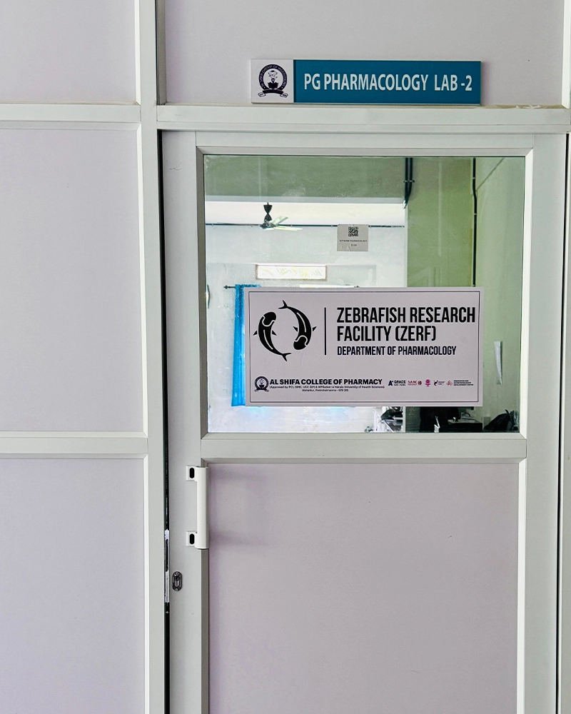 The Department of Pharmacology, Al Shifa College of Pharmacy, Kerala, has established the Zebrafish Research Facility (ZERF), a state-of-the-art laboratory dedicated to advancing biomedical research. This initiative marks a significant step in strengthening the department’s research capacity and enhancing its contribution to innovative drug discovery and translational research.