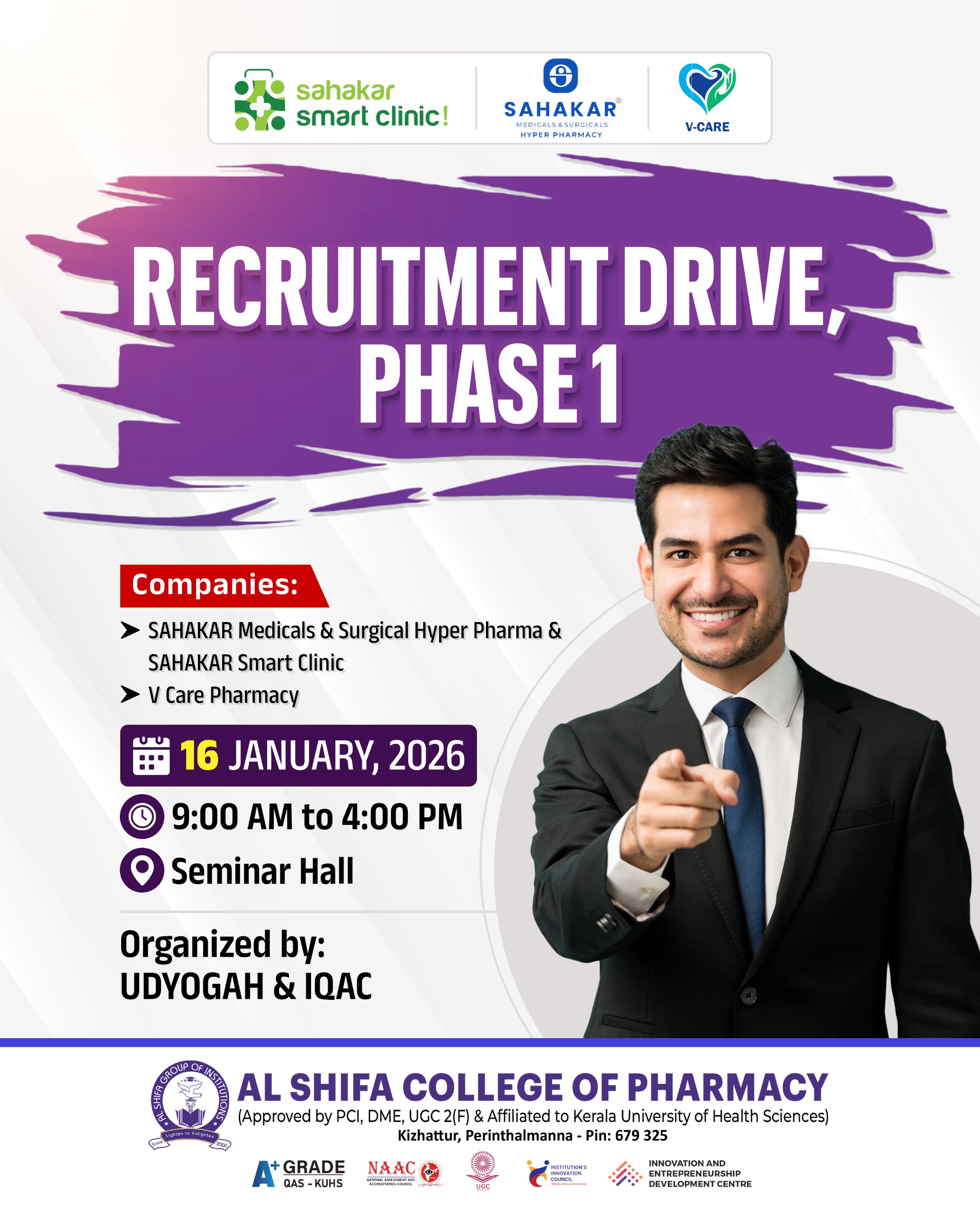 | 17 | 01-03-2024 | Campus Placement Drive: Shafi Haji Medicals at Al Shifa College of Pharmacy |